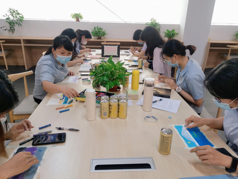 随后,职工们结合在分享会上的所获所得和生活中的感想,将自己喜欢的书籍内容转化成一幅幅颜色艳丽的油棒画,大家全身心地投入,享受油棒画创作的乐趣,在轻松的氛围中探索不一样的自己,体会生活的美好。